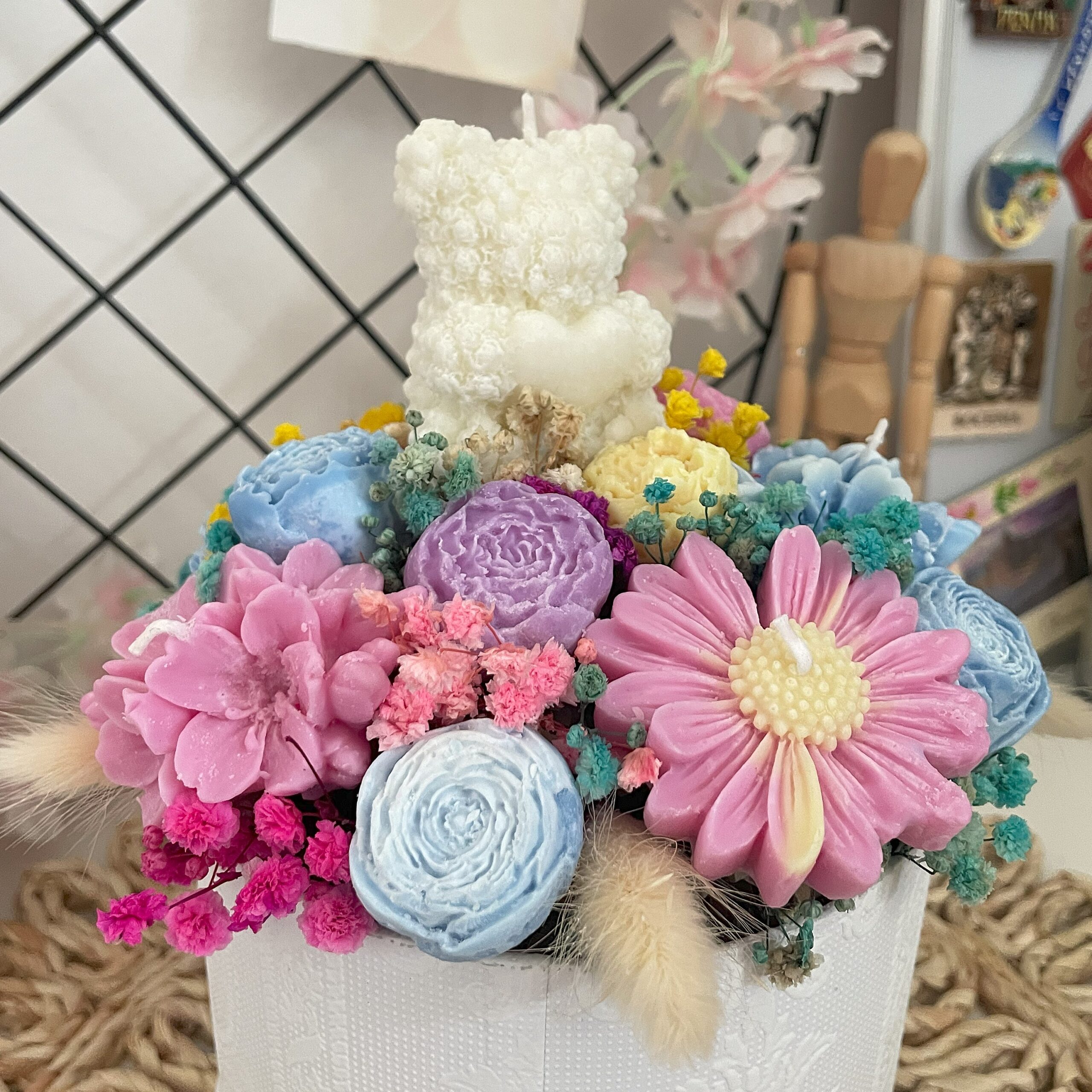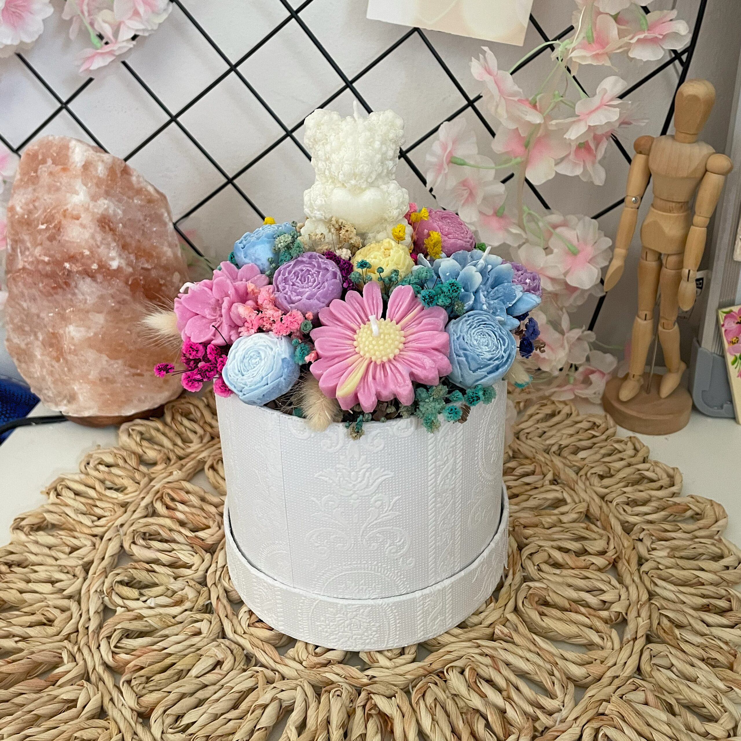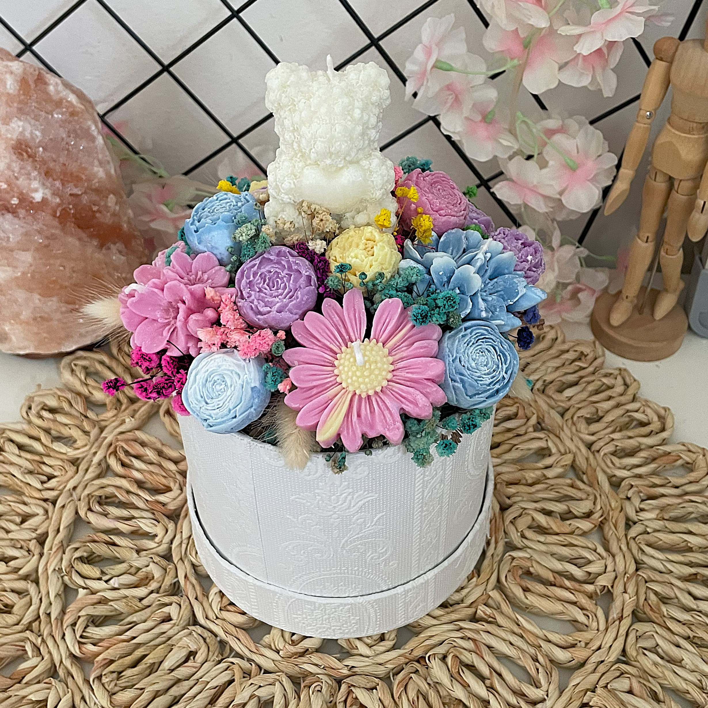 🌸 Miś trzymający serduszko – urocza świeca wolnostojąca, która skradnie każde serce