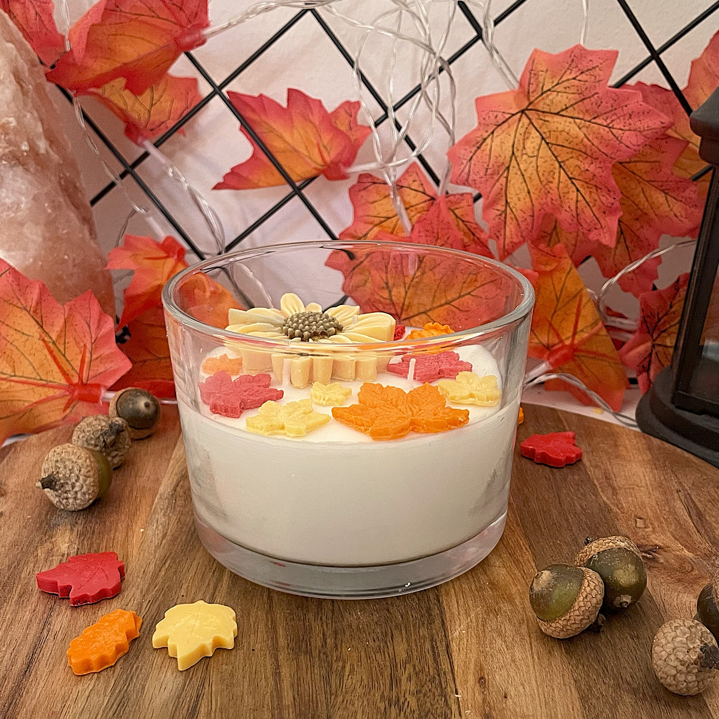 Ta świeca sojowa z naturalnym woskiem jest bezpieczna dla środowiska i idealna dla osób szukających alternatywy dla tradycyjnych świec parafinowych. Dzięki pięknym, jesiennym dekoracjom na powierzchni stanie się też wyjątkową ozdobą każdego pomieszczenia.
