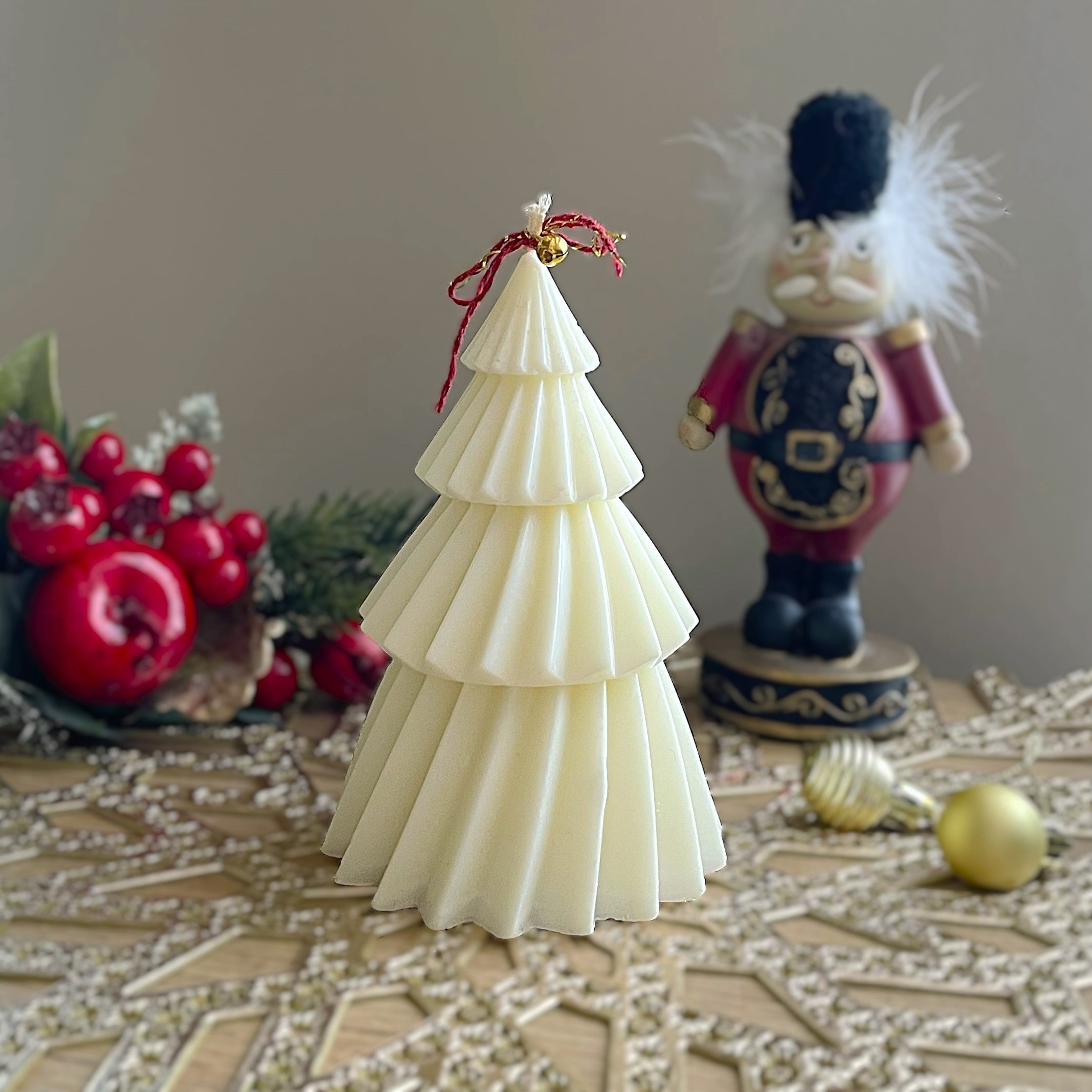 - 🎄 Świecę w kształcie choinki – 12 cm wysokości i 7,5 cm szerokości u podstawy.