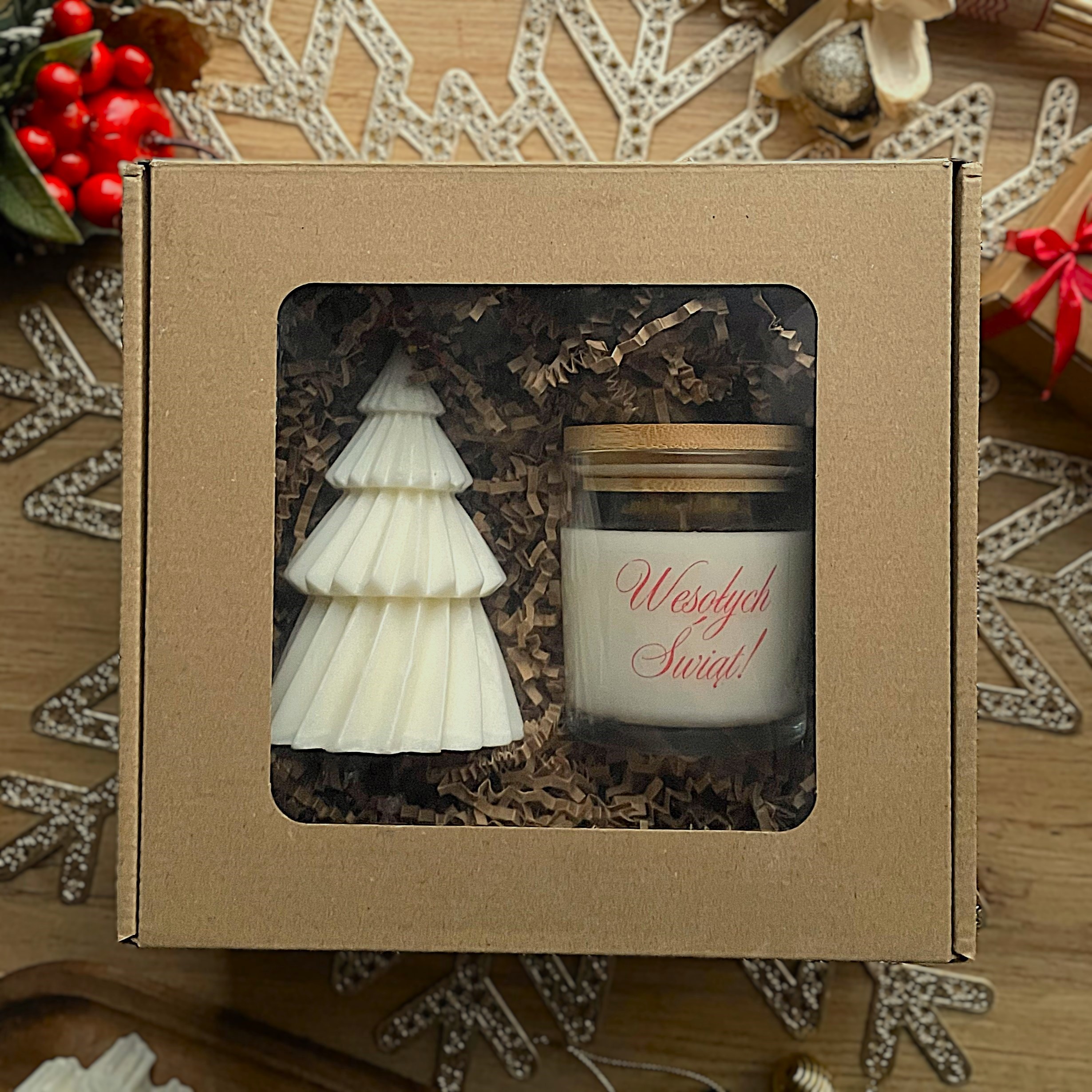 Cały zestaw utrzymany jest w kolorze naturalnego wosku sojowego, co nadaje mu elegancki, ponadczasowy wygląd. To ekologiczny prezent handmade, wykonany z troską o środowisko i estetykę.
