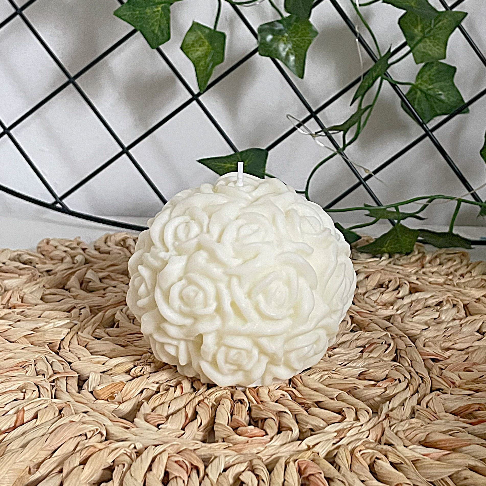 🌹 Świeca z różami | Kula z wosku sojowego | Świeca ślubna ozdobna