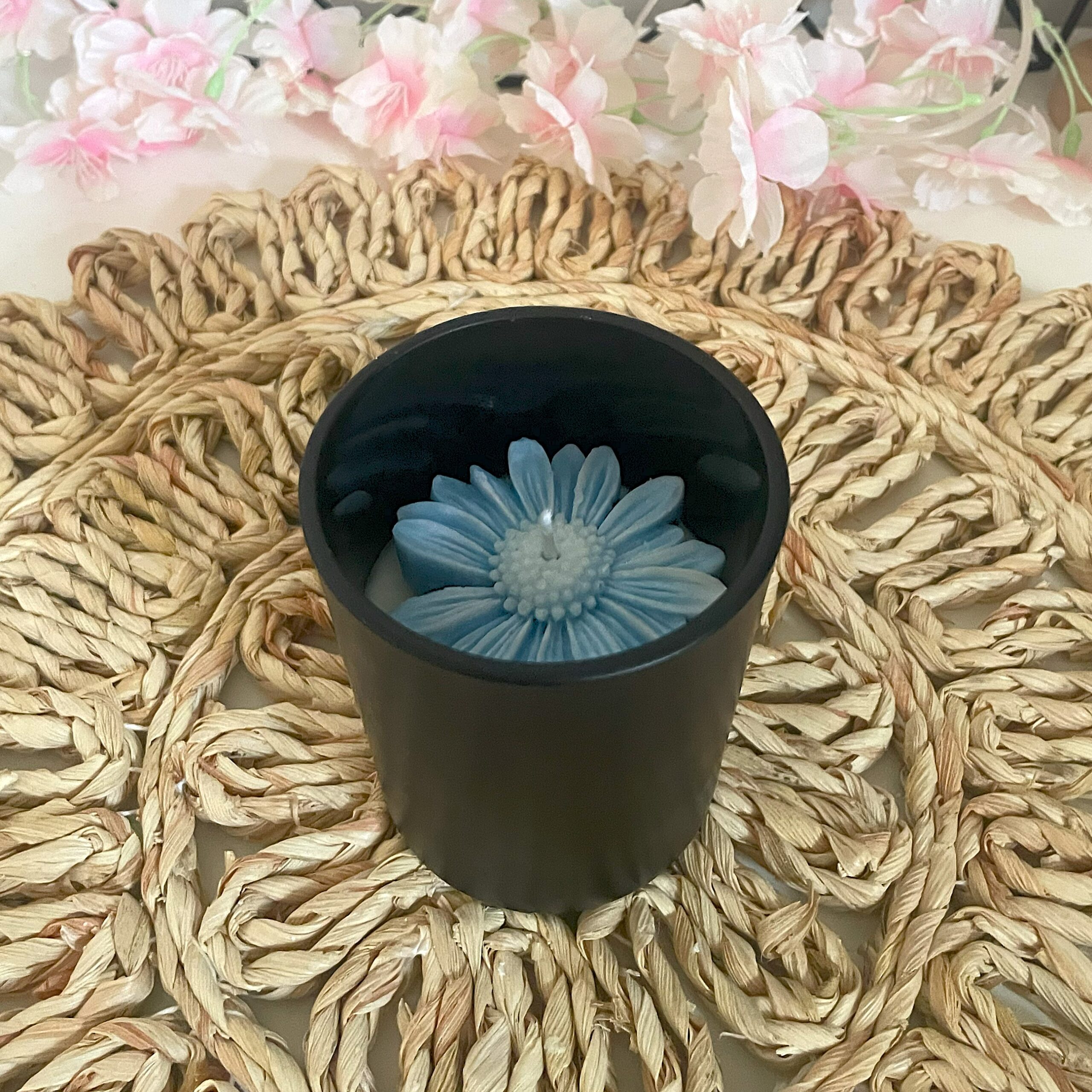 🕯️ Ręcznie robiona świeca sojowa w czarnym, matowym szkle z woskowym kwiatem