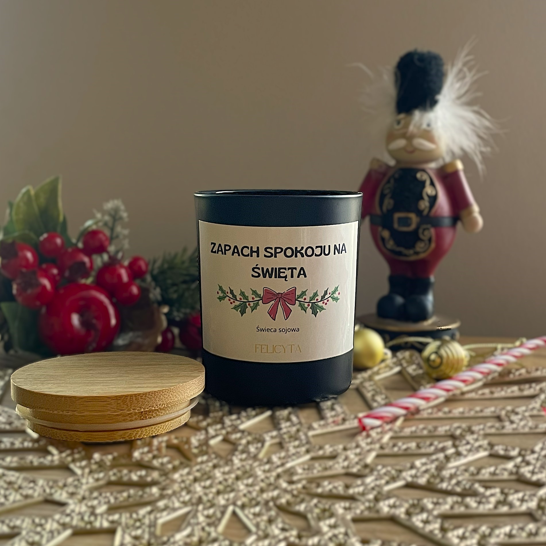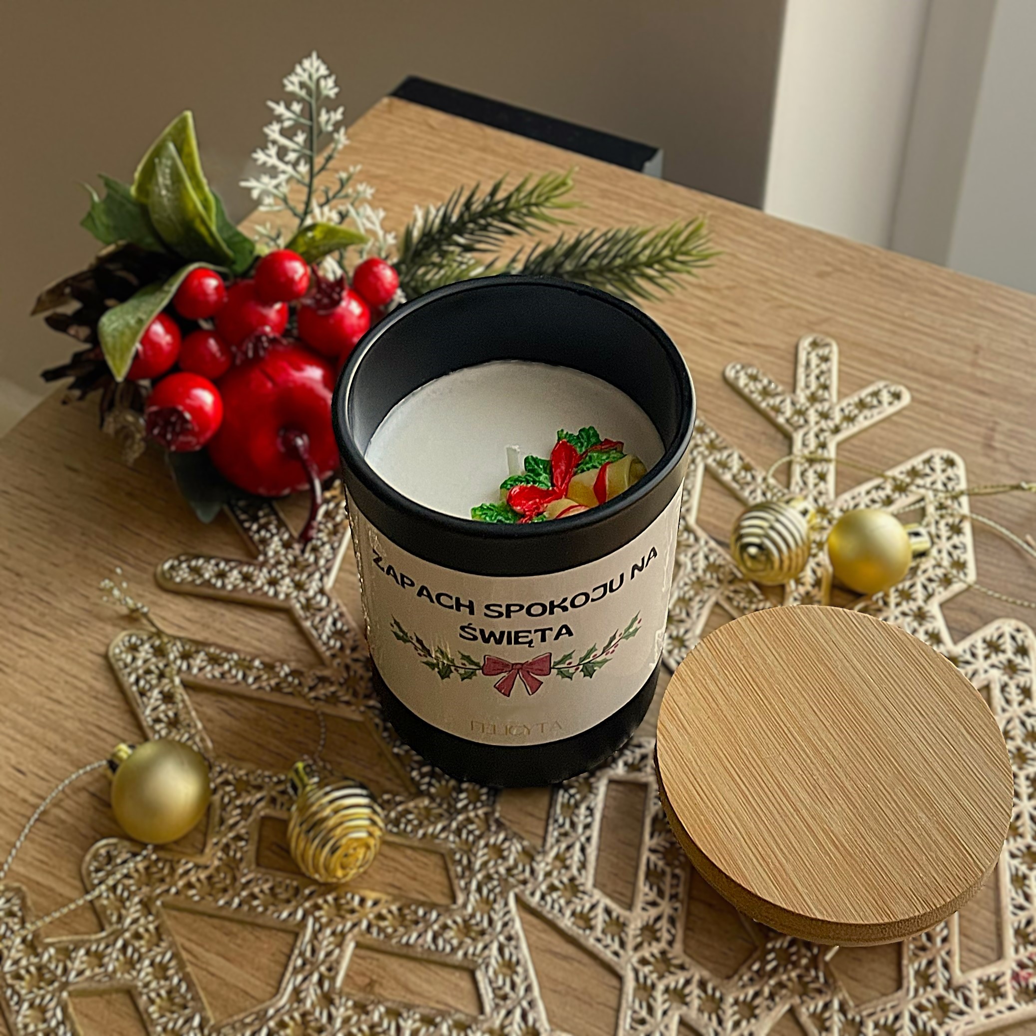 Świeca sojowa „Zapach spokoju na święta” to połączenie prostoty, elegancji i natury. Zapewnia chwilę relaksu, odprężenia i wytchnienia w czasie świątecznych przygotowań.