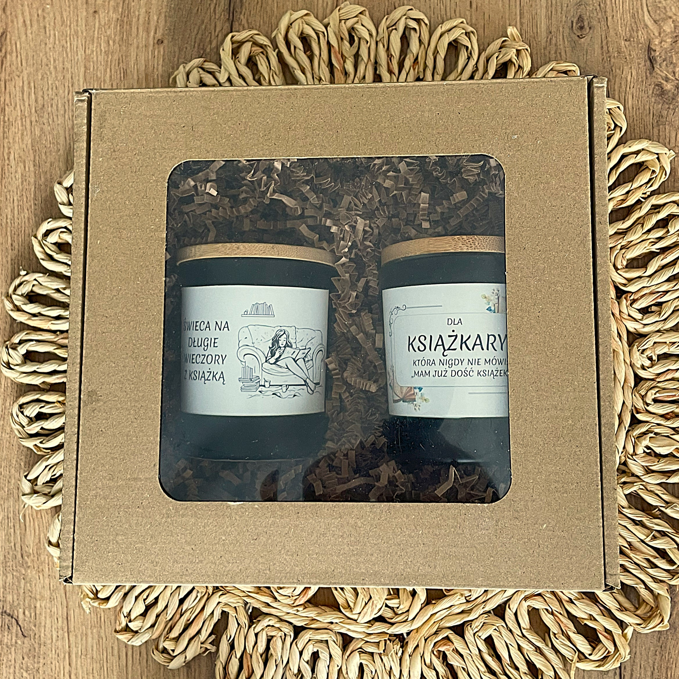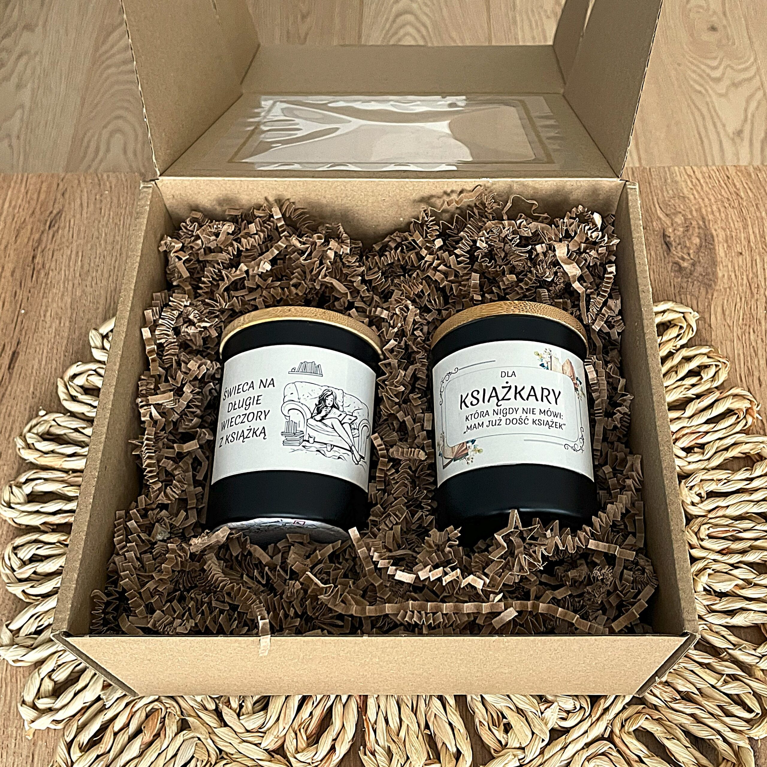 Odkryj przyjemność czytania w towarzystwie nastrojowego światła. Ten zestaw zawiera dwie świece sojowe stworzone z myślą o książkarzach.