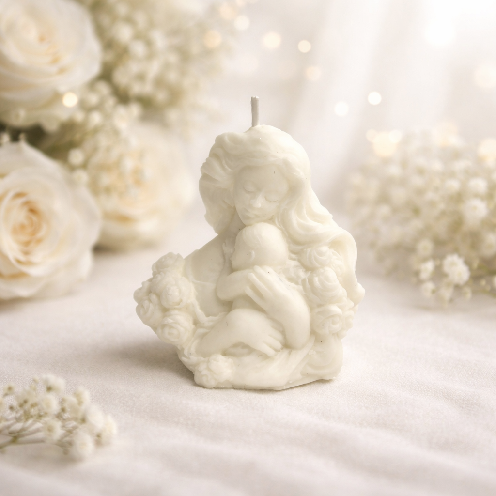 świecę wolnostojącą w kształcie matki z dzieckiem, która zachwyca pięknymi detalami,