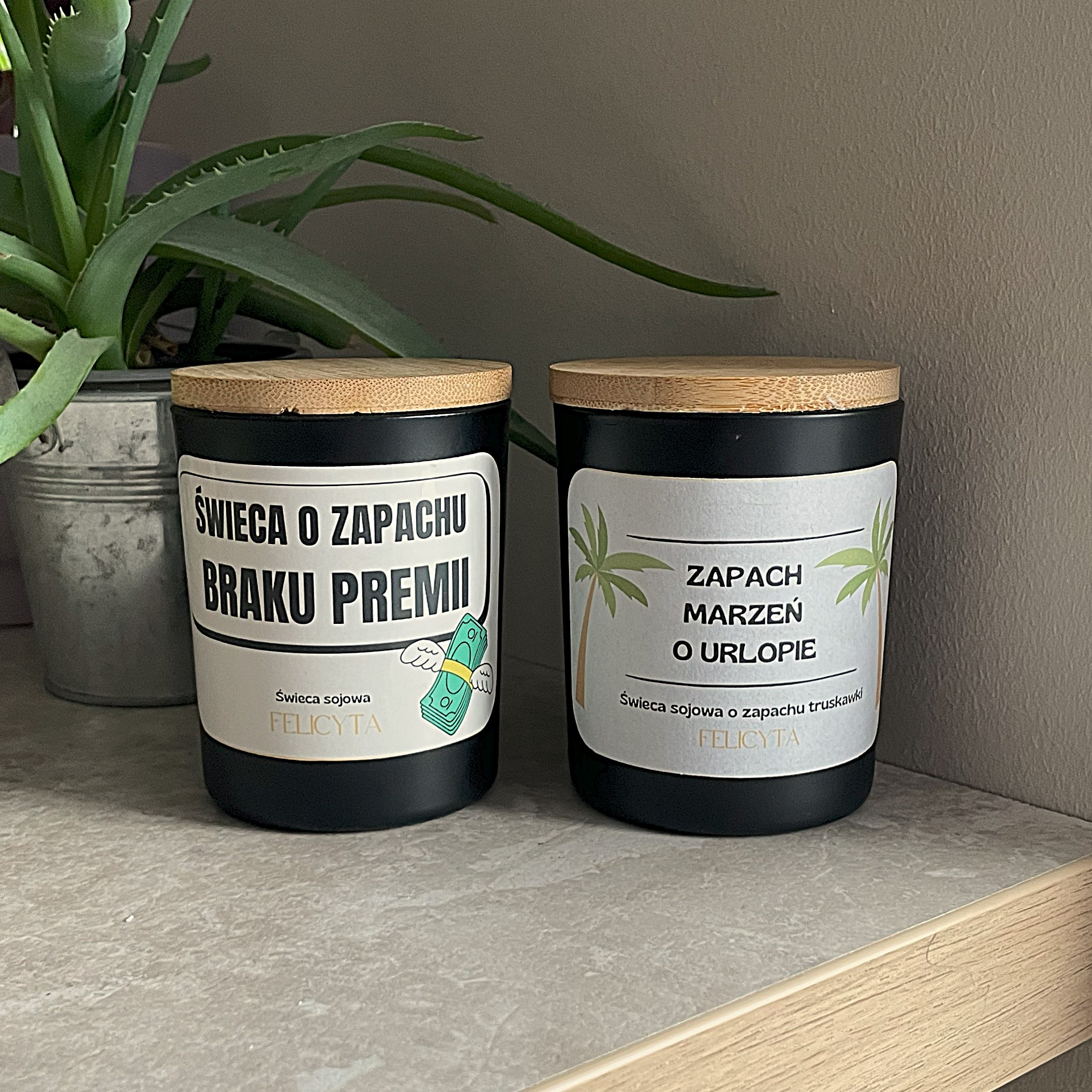 ŚWIECA O ZAPACHU BRAKU PREMII – idealna na momenty świętowania sukcesów.