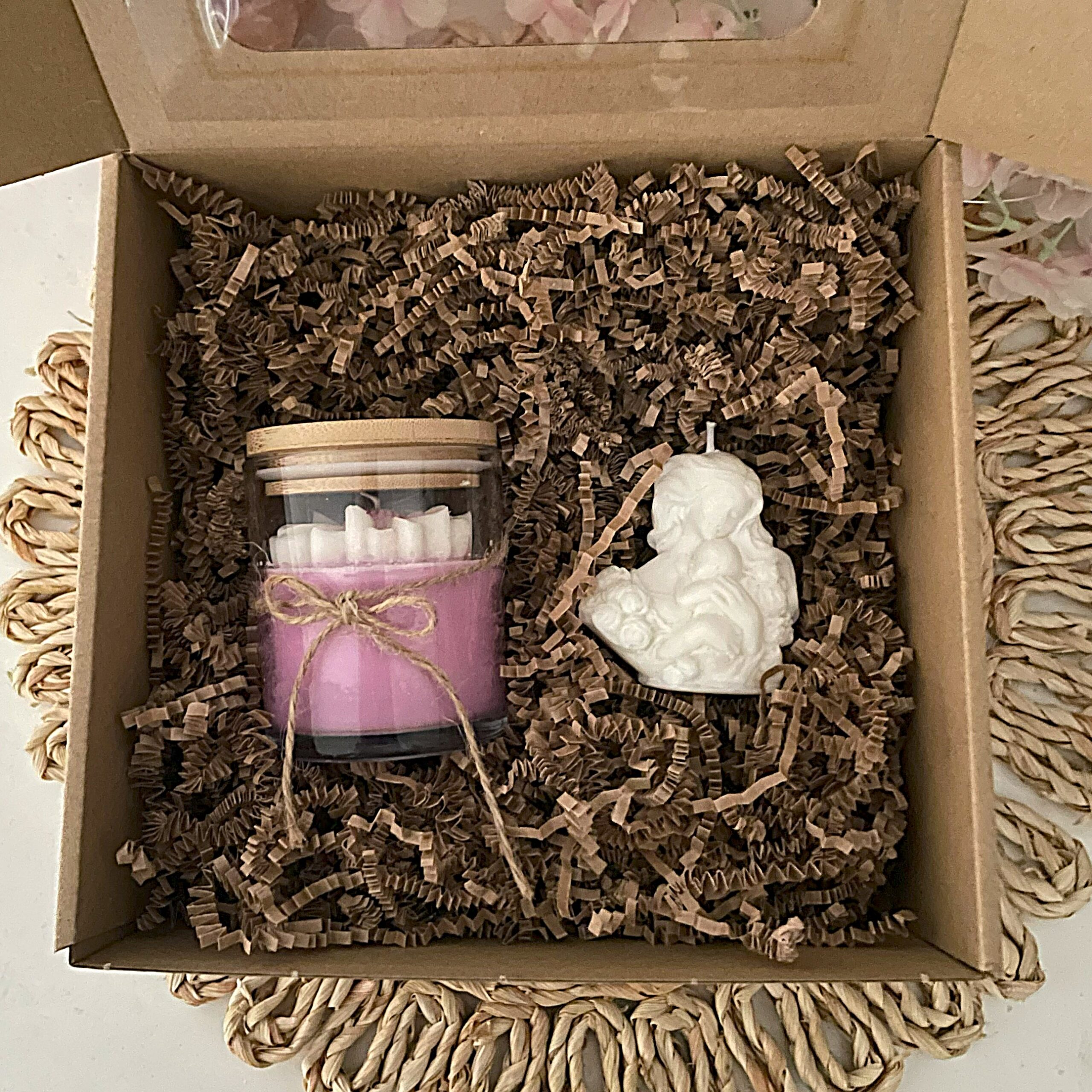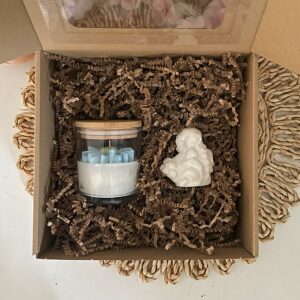 Zestawy stworzyłam tak, by nie były tylko ładnym upominkiem. Chciałam, żeby były osobistym doświadczeniem – takim, które zatrzymuje na chwilę, wywołuje wzruszenie i zostaje w pamięci. Każdy z nich składa się z ręcznie robionej świecy sojowej, dodatków dobranych z sercem oraz opakowania, które od razu sprawia, że prezent chce się przytulić.